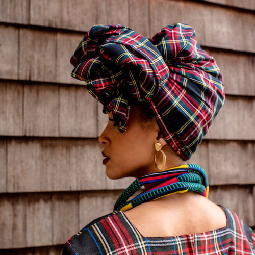 Get into the spirit of the season with this handmade headwrap by Haitian-born designer Paola Mathé. The classic red-and-green plaid pattern will add a dose of Christmas to any outfit.