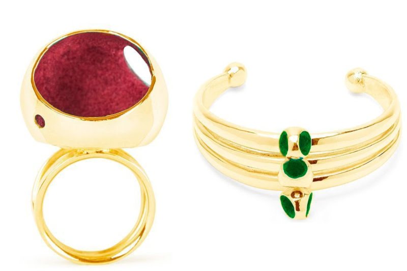Dominican jewelry designer, Monica Varela’s eponymous brand features innovative techniques and an eclectic mix of materials. Pair this iconic ring with the matching bracelet, both of which blend gold with colorful microscopic fibers.
